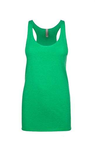 เครื่องแต่งกายระดับถัดไปของสุภาพสตรี Tri-Blend Racerback Tank Top-ทำจากโพลีเอสเตอร์50%,ผ้าฝ้าย25% และเรยอน25% มาพร้อมกับโลโก้ของคุณ