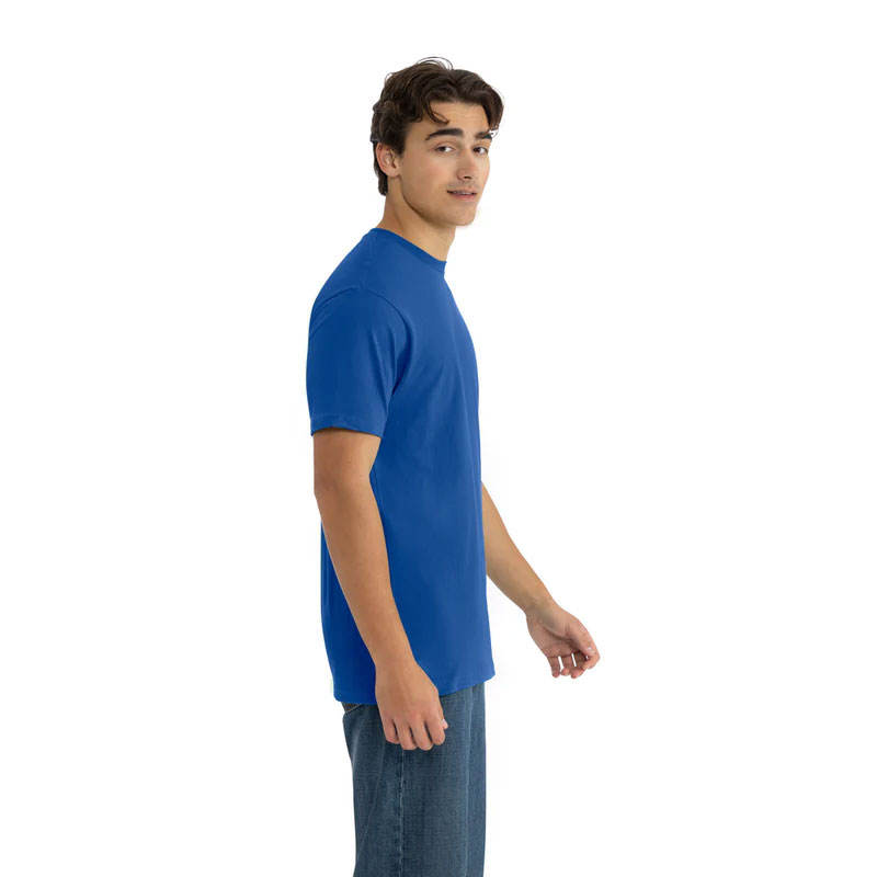 เสื้อยืดเนคซ์ เลเวล แอพพาเรล ผ้าฝ้ายนุ่ม ยูนิเซ็กซ์ สีน้ำเงินเรียบ แบบเรียบง่าย สวมใส่สบาย พรีเมียม รับผลิตตามแบบ OEM พร้อมสกรีนโลโก้
