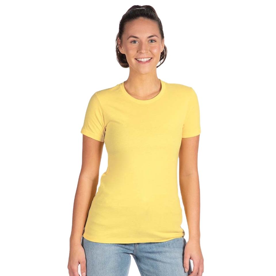 เสื้อยืด Next Level Ladies CVC ผ้าคอตตอนคอมบ์ 60/40 ผสมโพลีเอสเตอร์ 32 เส้นด้ายเดี่ยว พิมพ์ลายตัวอักษรสีสันสดใส เสื้อยืดลำลองแขนสั้น