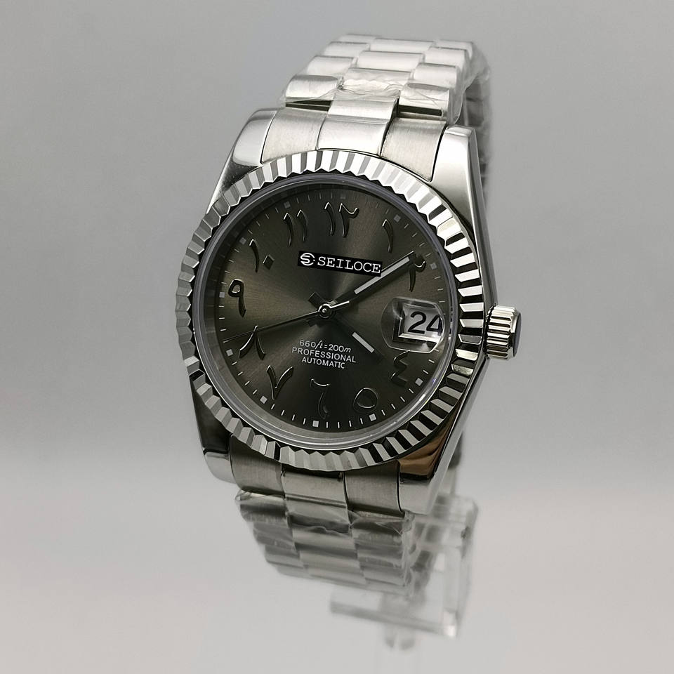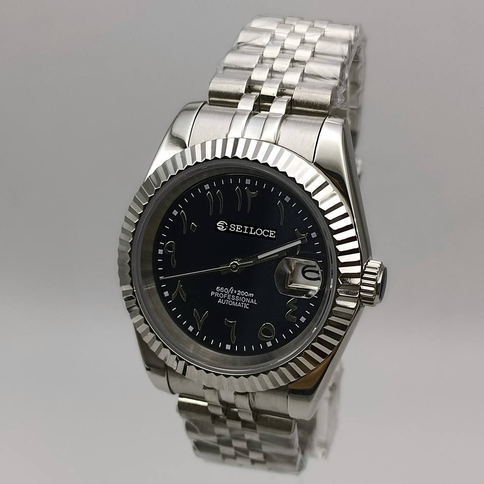 นาฬิกาข้อมือระบบอัตโนมัติ NH35 คุณภาพสูง หน้าปัดตัวเลขอารบิก