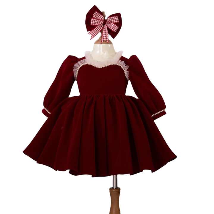 Nhung เหงียนเสื้อกั๊กกำมะหยี่ทรงสูงไซส์ใหญ่สำหรับเด็กชุดเจ้าหญิงเสื้อผ้าสวยๆของเด็กจีนฤดูใบไม้ร่วง