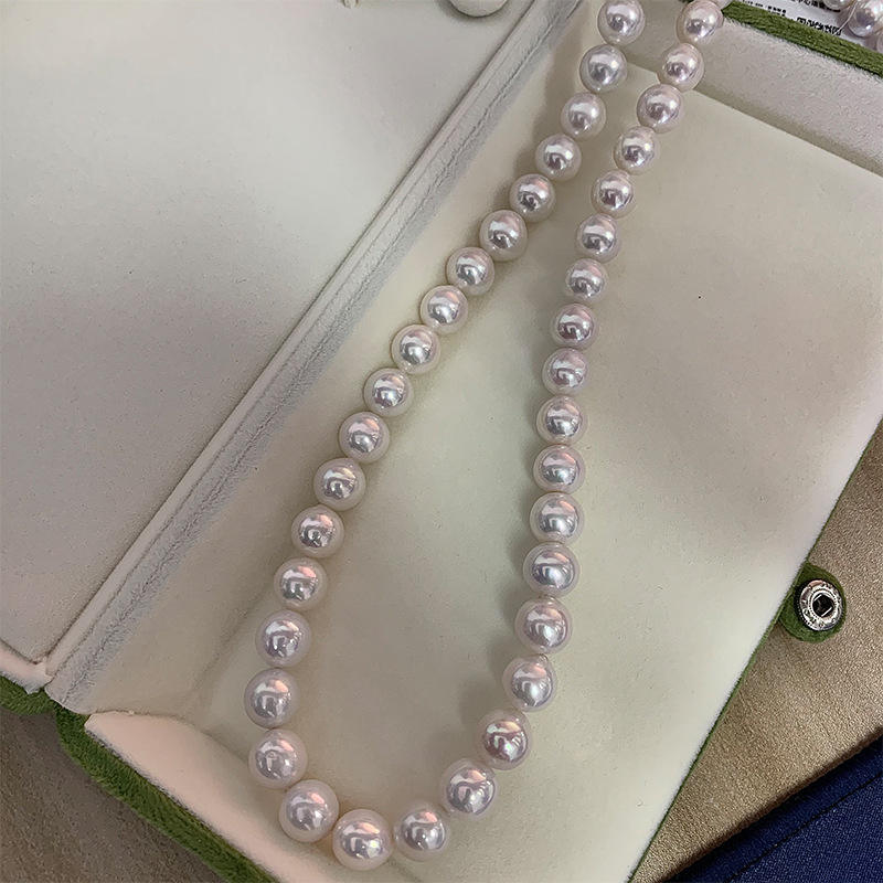 สร้อยคอมุกนีนีคลาสสิค 9-10 มม. ดีไซน์เรียบหรู พร้อมออโรร่าสุดสง่างาม จากวงกลมที่ใกล้เคียงสมบูรณ์แบบ