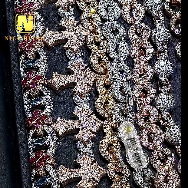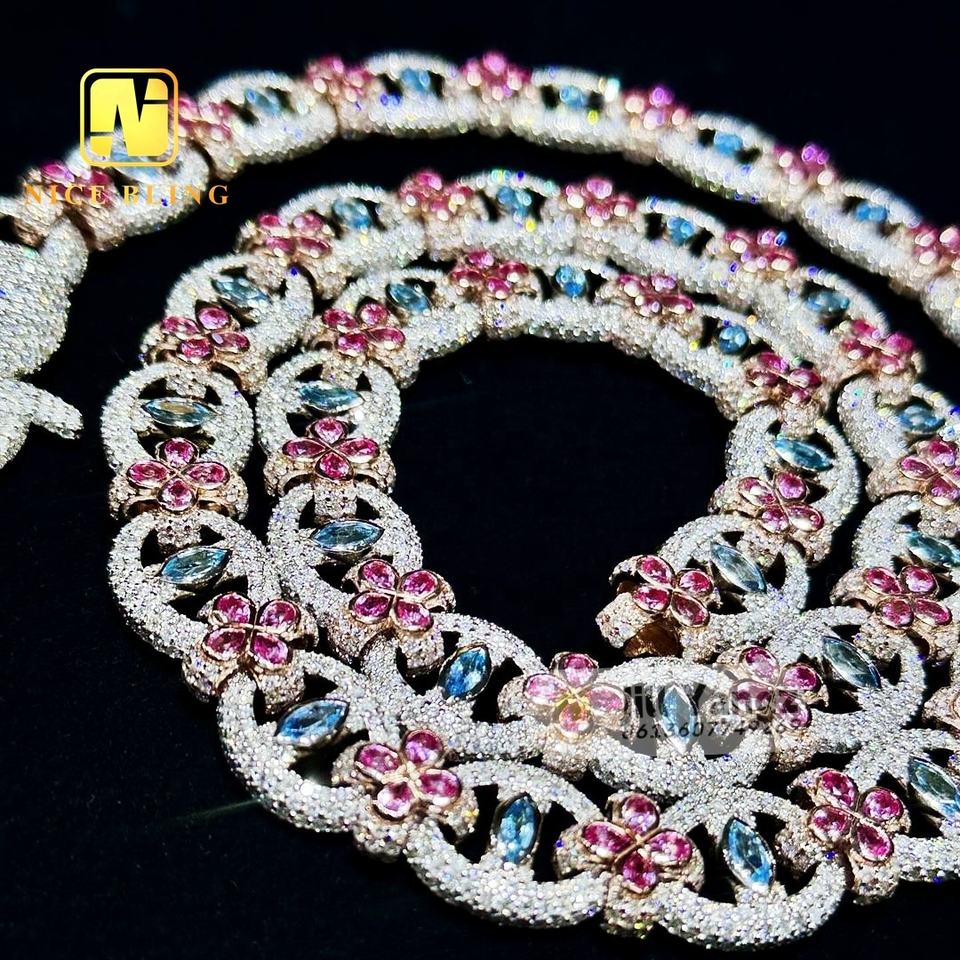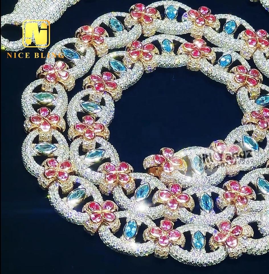 Nice Bling การออกแบบพิเศษที่กําหนดเอง 925 ดอกไม้เงินเครื่องประดับตาปีศาจโซ่คิวบาสีลูกบาศก์เซอร์โคเนียสร้อยคอสร้อยข้อมือหิน