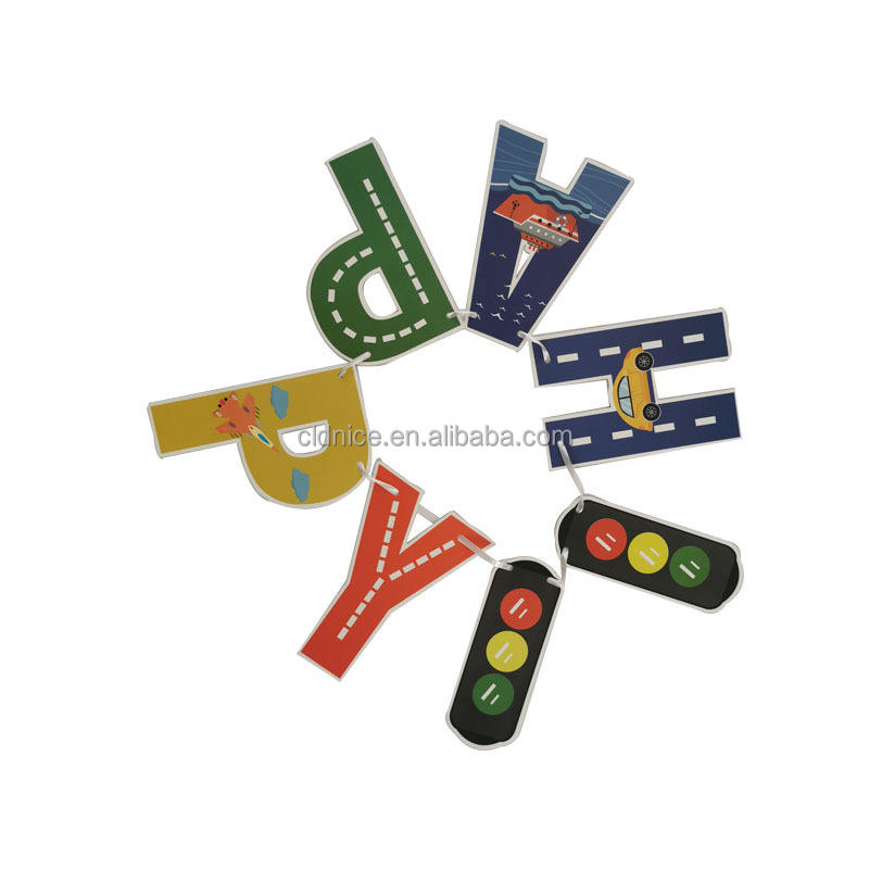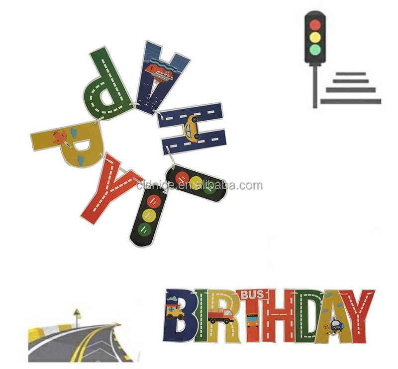 Nice Happy Birthday Banner Cartoon Engineering Car Train Paper Banner Birthday Party Decoration for Children