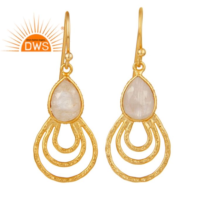 Nice Looking Rainbow Moonstone Earring Gemstone Jewelry Supplier Gold Plated 925 Silver Earring Jewelry Manufacture