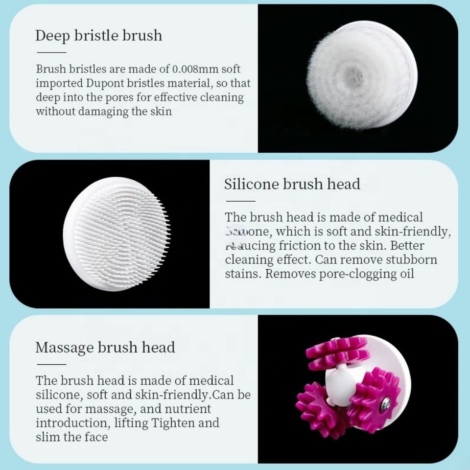 แปรงทำความสะอาดผิวหน้าไฟฟ้า 3 in 1 นิค แมสสาจ แบบไร้สาย พร้อมหัวแปรงซิลิโคน