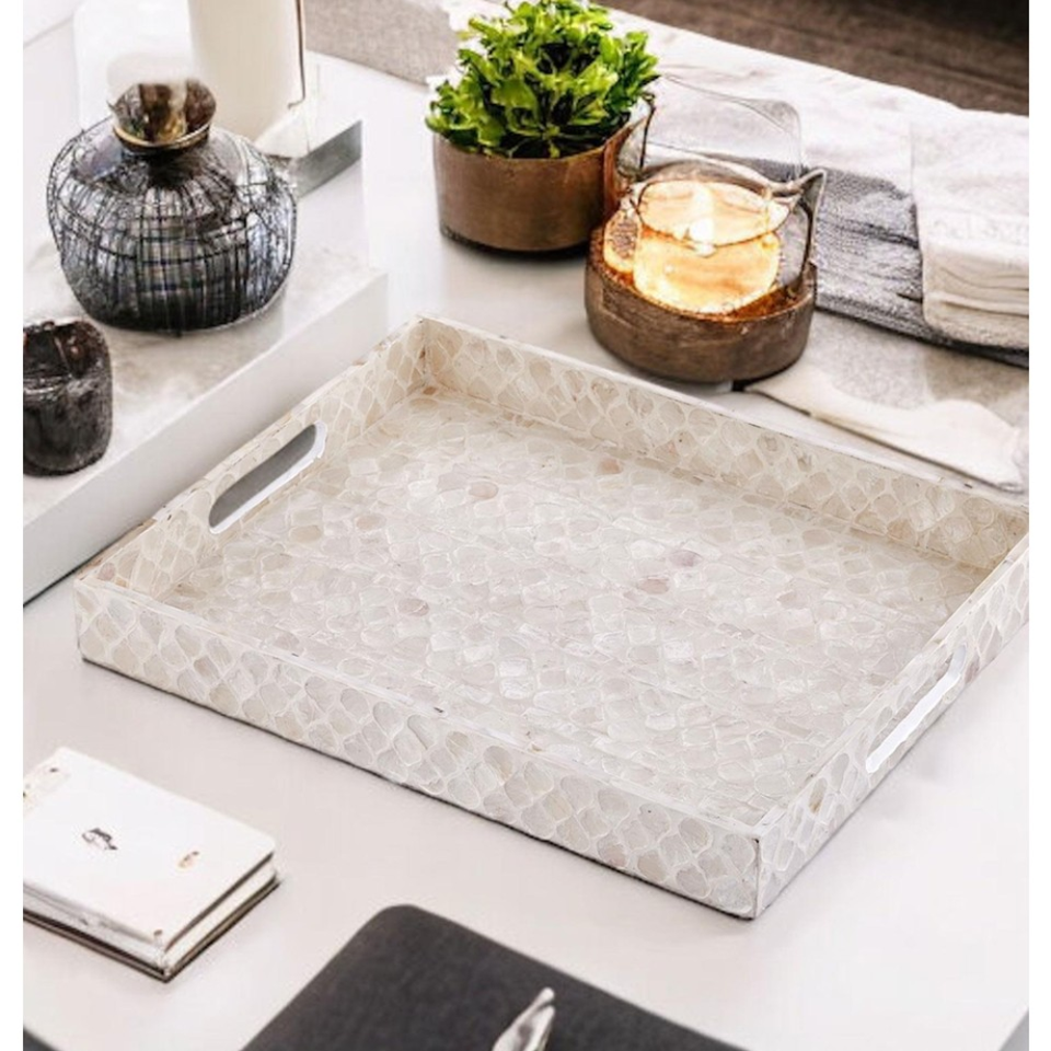 Capiz ถาดแบบฝังเปลือกหอยหรูหราทันสมัยถาดสำหรับตกแต่งโต๊ะกาแฟโต๊ะเครื่องแป้งจากเวียดนาม