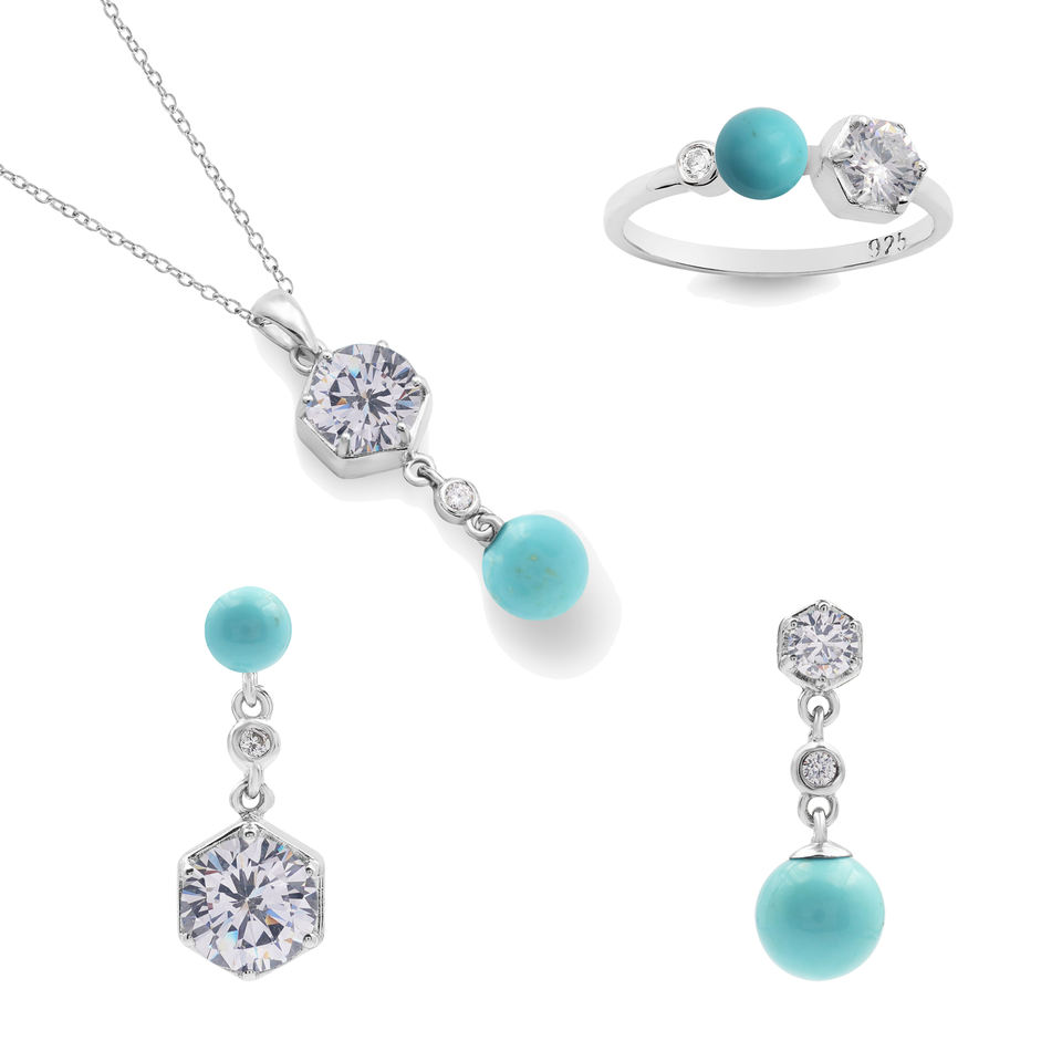 คุณภาพดี925เงินสเตอร์ลิงเครื่องประดับน้อยที่สุดต่างหูแหวนพลอยเทอร์ควอยซ์สีขาวธรรมชาติและชุดเครื่องประดับสร้อยคอ