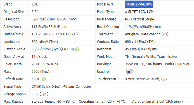 ความละเอียด:320(RGB)*240, QVGA 70PPI