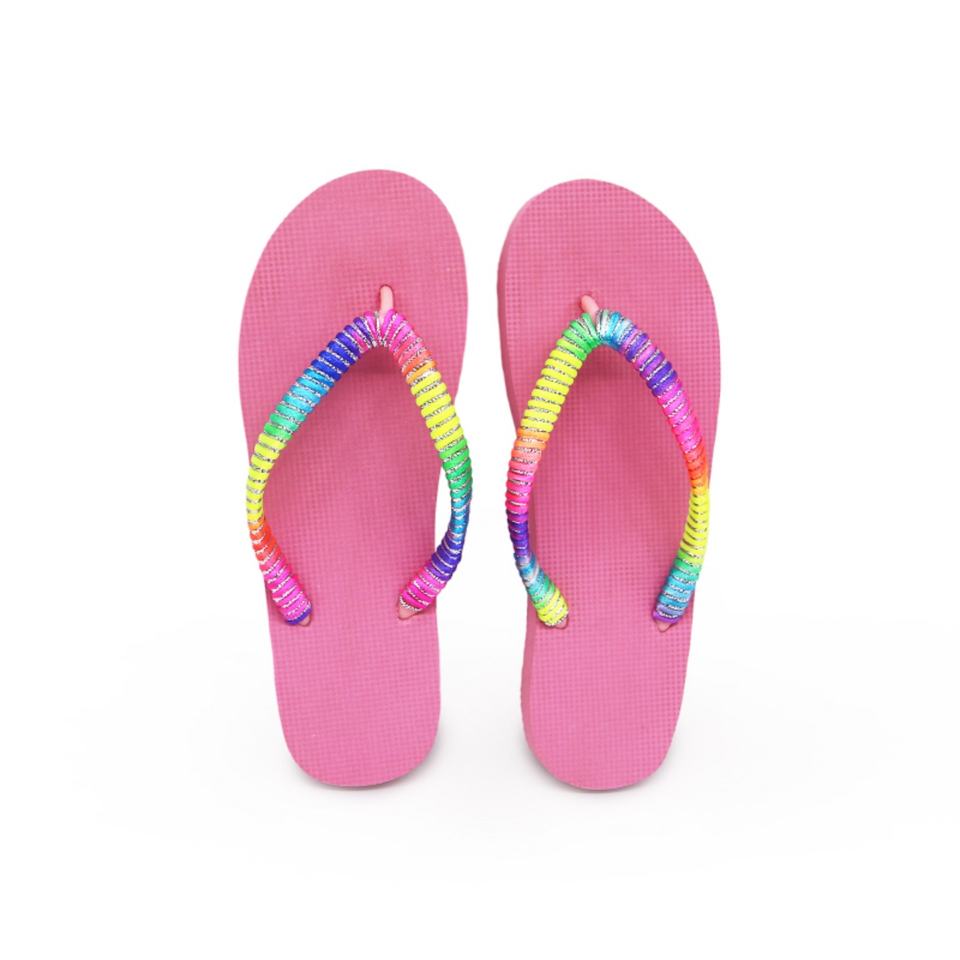รองเท้าแตะผู้หญิงสีชมพู Nicecin สายรุ้ง สายรัดเชือก รองเท้าชายหาด พื้นนุ่ม EVA กันลื่น รองเท้าแตะฤดูร้อน รับทำโลโก้ OEM