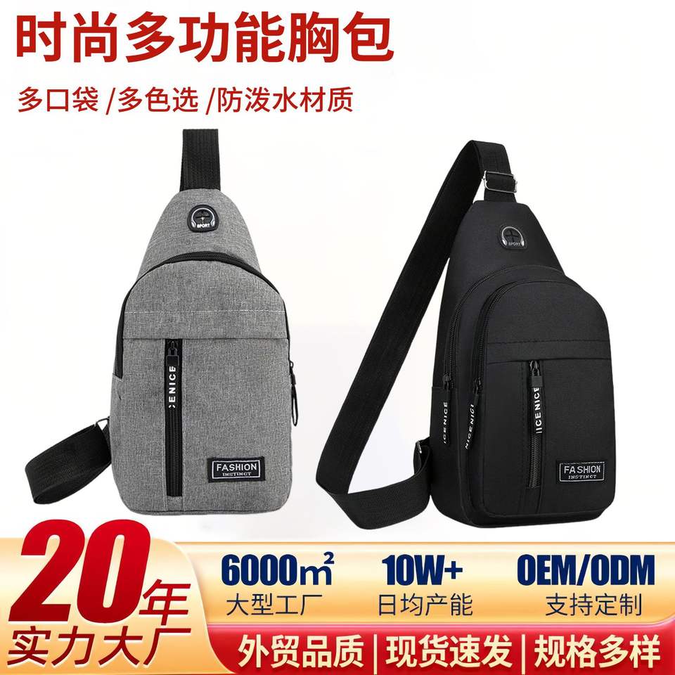 นิเซนีกระเป๋าคาดหน้าอกผู้ชาย ผ้าอ็อกซ์ฟอร์ด กันน้ำ กระเป๋าสะพายข้าง USB สำหรับเดินทางเพื่อธุรกิจ สีพื้น ฤดูใบไม้ผลิ 2025