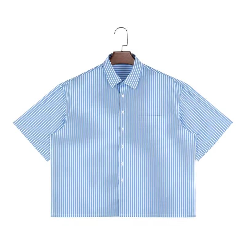 เสื้อเชิ้ตฮาวายสำหรับผู้ชายแบรนด์นิช ทรงหลวม สั่งตัดได้ ผ้าฝ้าย 100% ติดกระดุม กันยับ แขนสั้น ปักโลโก้ด้านหน้า