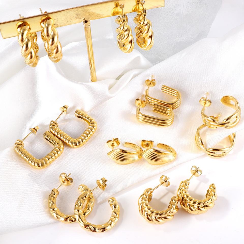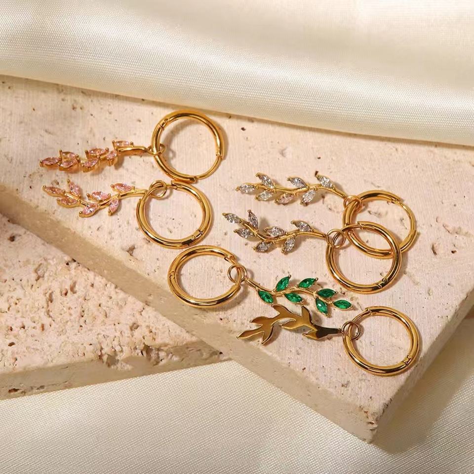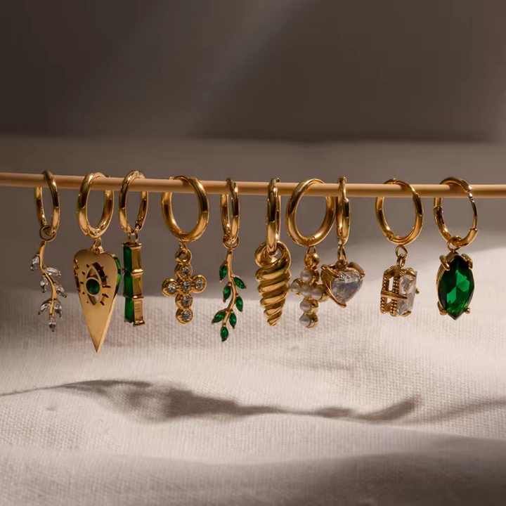 ตุ้มหูเซอร์คอนสีมรกตคุณภาพสูงหรูหราสีไม่ซีดจางทำจากสเตนเลส18K ดีไซน์แบบผสม