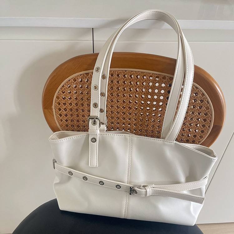 กระเป๋าโท้ทดีไซน์เกาหลีสีดำทรงสี่เหลี่ยมขนาดใหญ่จุของได้เยอะ เหมาะกับการใช้งานประจำวันสำหรับผู้หญิง คอลเลคชั่นฤดูใบไม้ร่วง 2025
