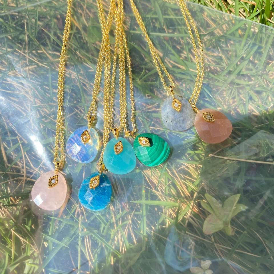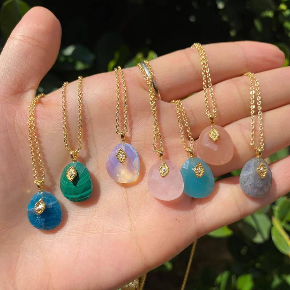 สร้อยคอหินธรรมชาติหรูหราเฉพาะกลุ่มอเนกประสงค์และประณีต Malachite Xiaole cll Chin ทองเหลืองชุบทองพร้อมสายโซ่