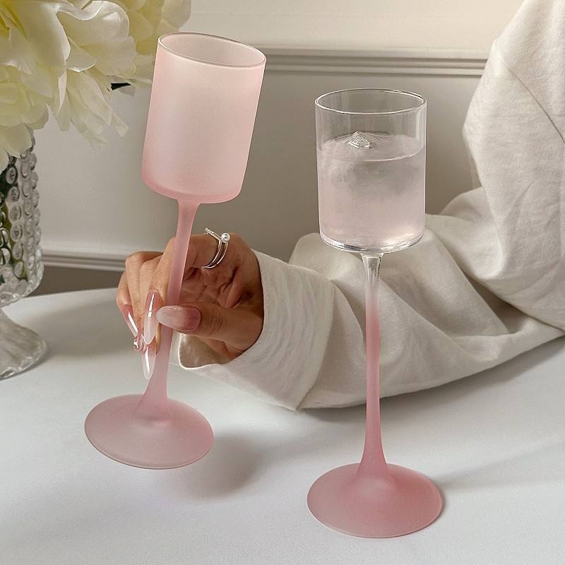 แก้วไวน์ทรงตรงสีชมพูฝรั่งเศสแบบมีฝ้า ความจุ 125 มล. เป็นมิตรกับสิ่งแวดล้อม ทันสมัย สำหรับไวน์และค็อกเทล