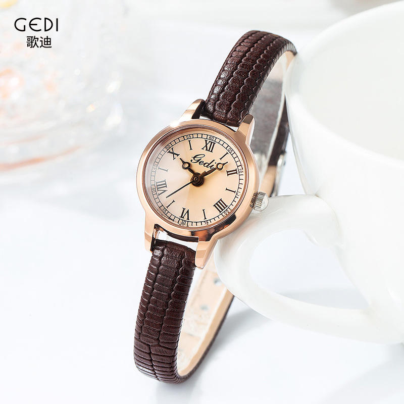 นาฬิกาผู้หญิงหน้าปัดเล็กสไตล์ย้อนยุคสายหนังสไตล์นักเรียนกันน้ำ