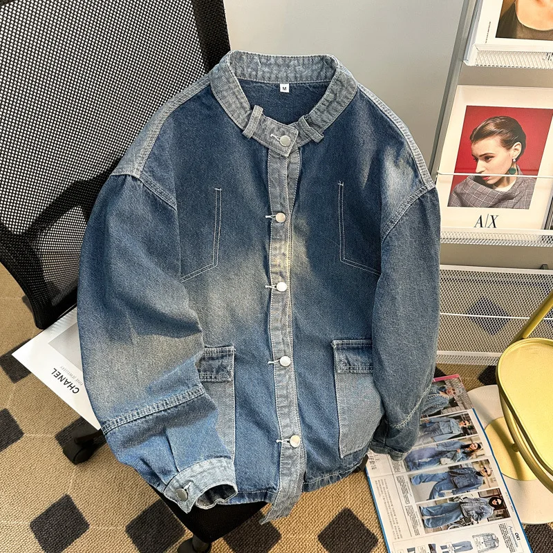 Nichedesign เสื้อแจ็กเก็ตยีนส์สำหรับผู้ชาย, เสื้อกั๊กทำงานทรงหลวมสไตล์วินเทจสำหรับฤดูใบไม้ผลิฤดูใบไม้ร่วงเสื้อกั๊กทำงาน2X