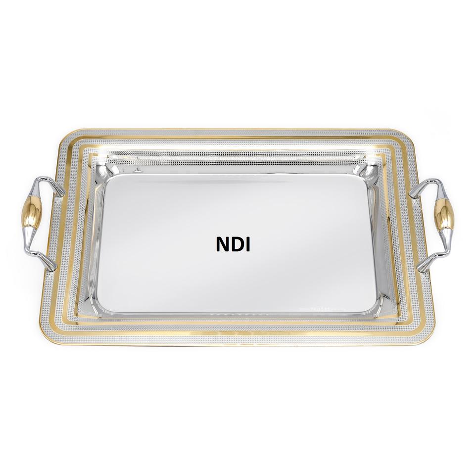 ถาดโลหะนิกเกิลสำเร็จรูปสำหรับตกแต่งโต๊ะในบ้านโรงแรมถาดเสิร์ฟเค้กผลไม้หรือของหวาน