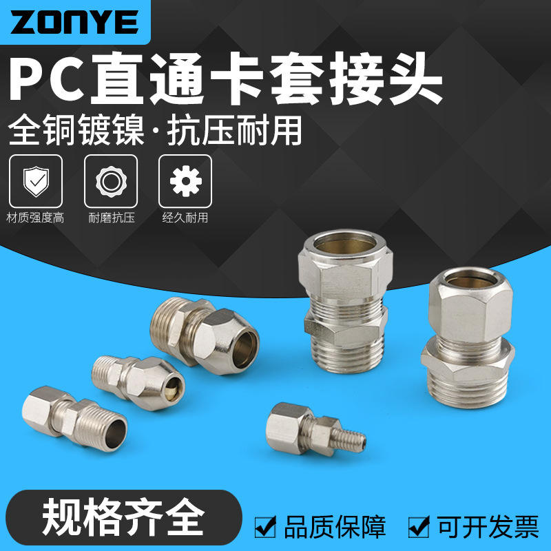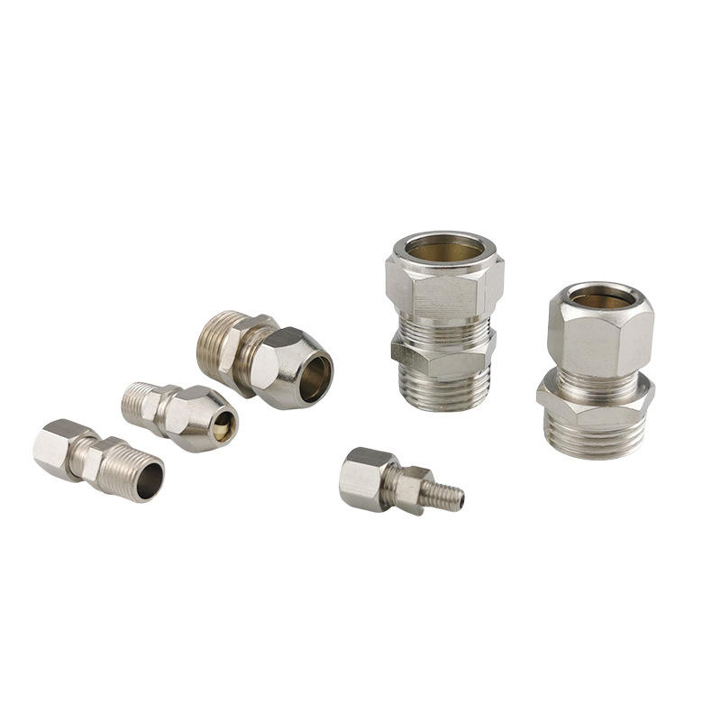 ข้อต่อทองเหลืองชุบนิกเกิลแบบอัด 6 8 10 12 16 มม. ข้อต่อท่อน้ำมันแบบเสียบปลั๊กพร้อมปลอกการ์ด