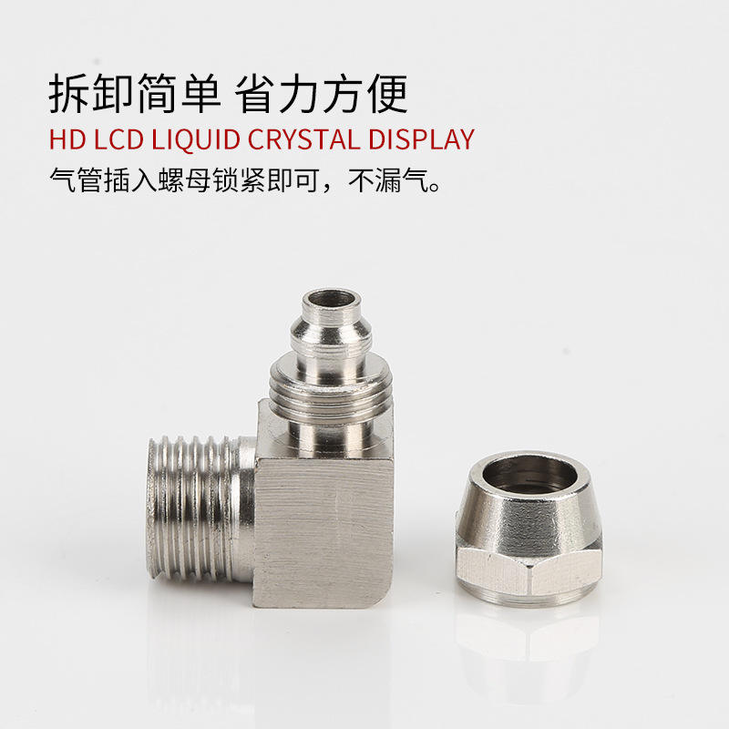 ข้อต่อทองแดงชุบนิกเกิลแบบงอเร็วสำหรับเครื่องมือลม ท่ออัดอากาศแบบล็อคเร็ว PL8-02 อุปกรณ์เสริมและอะไหล่