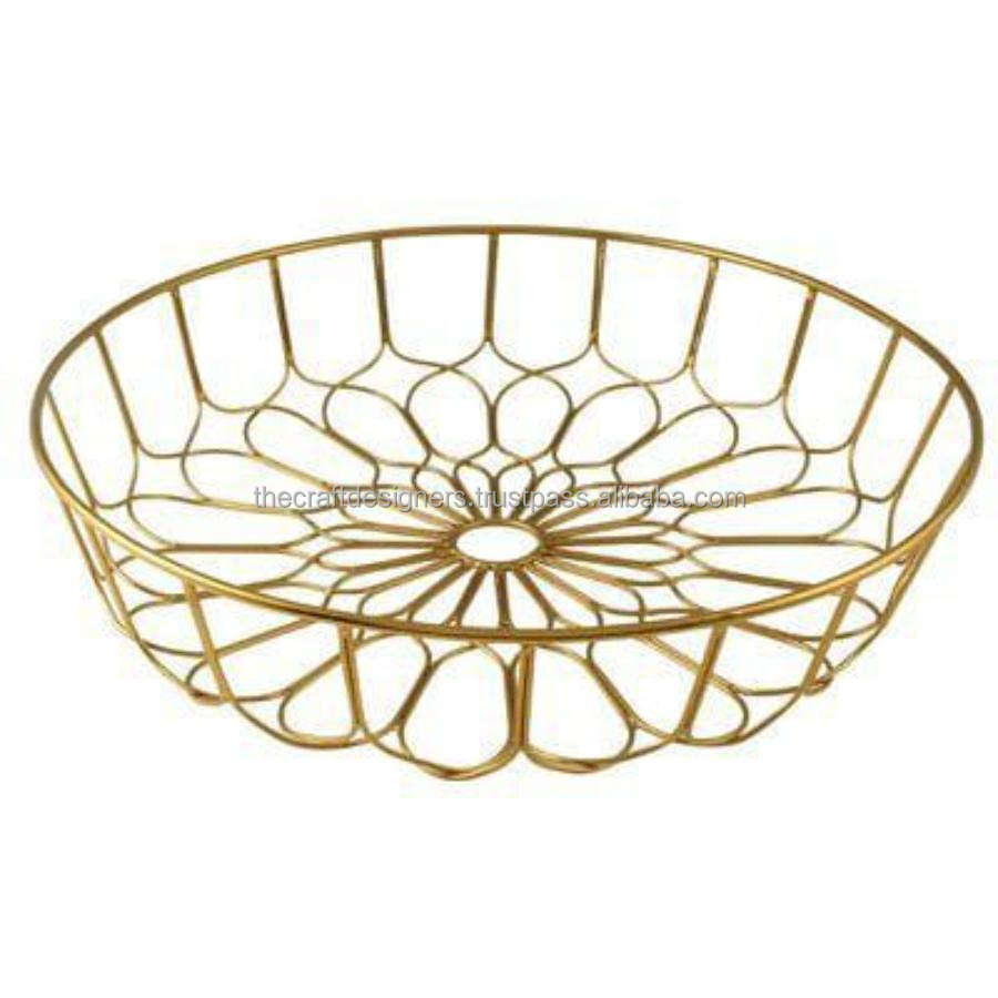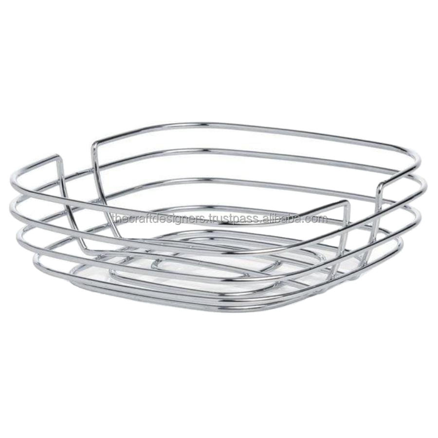ตะกร้าผลไม้ชุบนิกเกิลทรงสี่เหลี่ยมภาชนะโลหะสำหรับตกแต่งตะกร้าเก็บผลไม้คุณภาพสูง