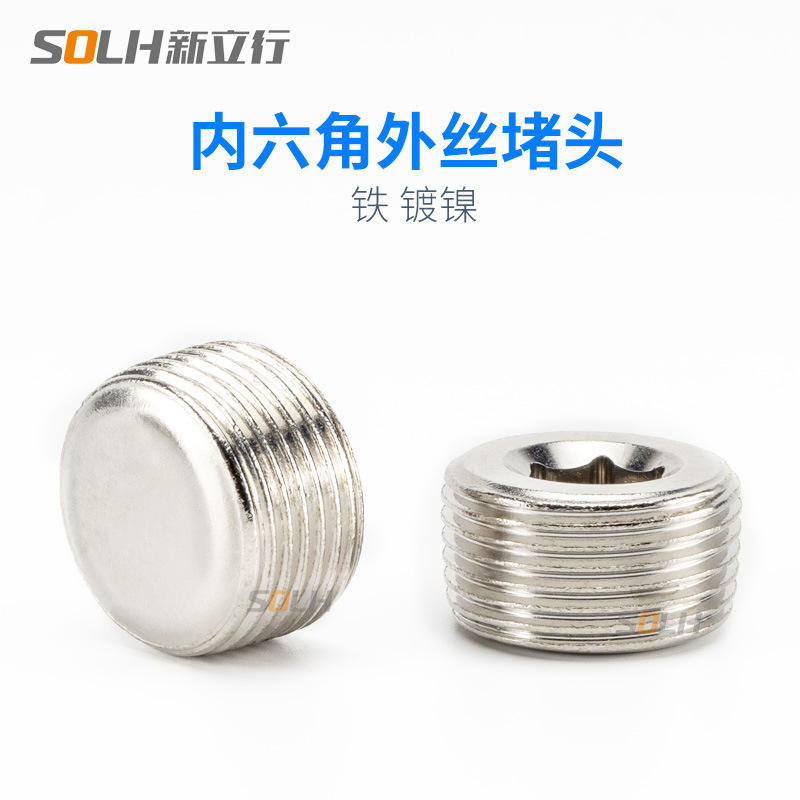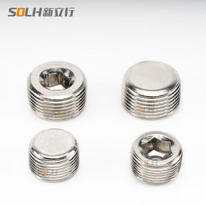 ปลั๊กหกเหลี่ยมภายในแบบชุบนิกเกิลสำหรับวาล์วโซลินอยด์ เกลียวภายนอก ขนาด 1/2 นิ้ว 3/4 นิ้ว 6/8 นิ้ว 1 นิ้ว สำหรับชิ้นส่วนระบบนิวเมติก