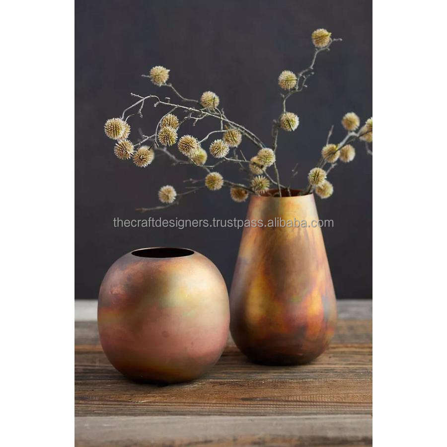 แจกันดอกไม้หรูหรากระถางต้นไม้ที่วางบนโต๊ะและพื้นชุบนิกเกิลชุดแจกันสวยงาม
