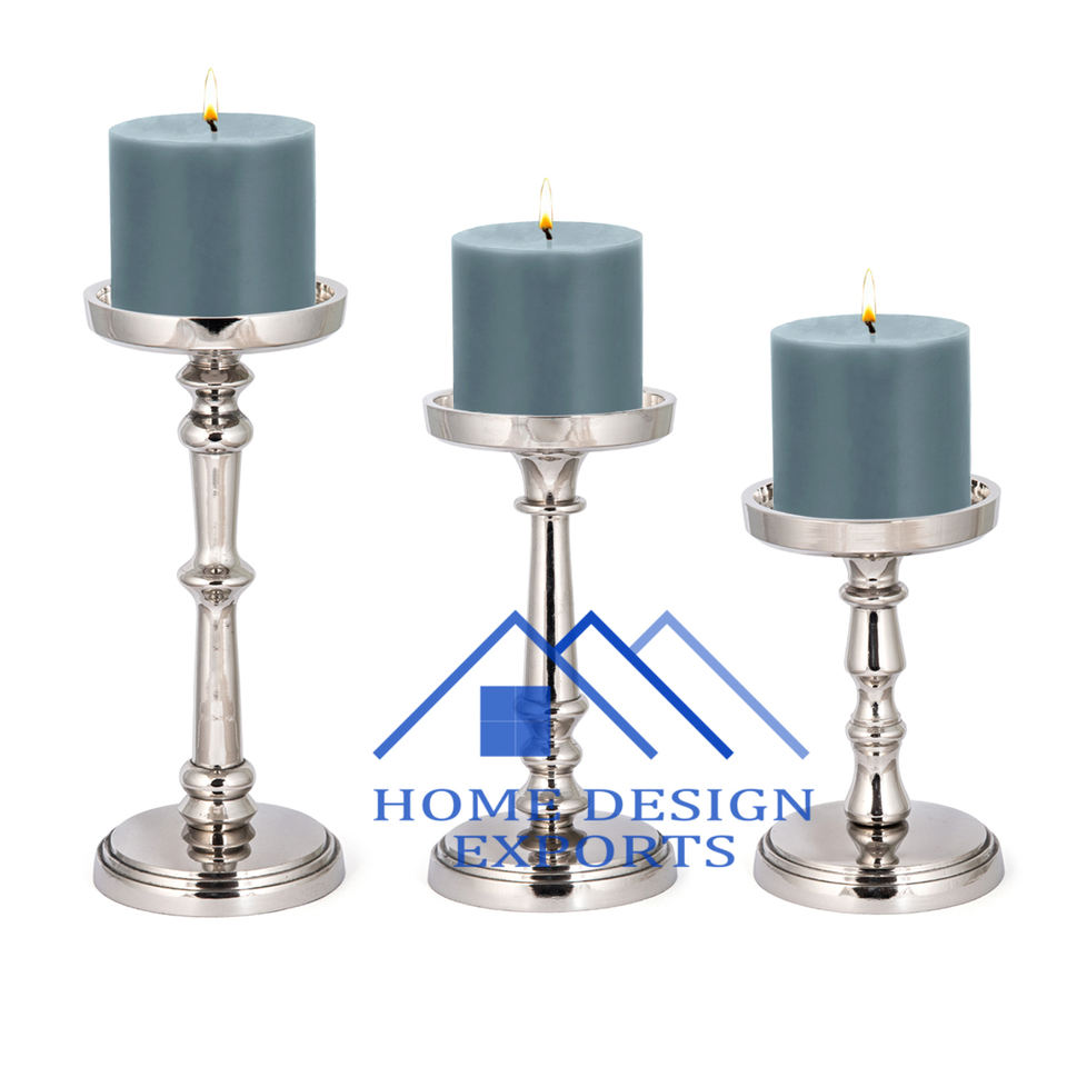 เชิงเทียนทรงเสาทำจากนิกเกิลซิลเวอร์สำหรับตกแต่งโต๊ะงานแต่งงาน