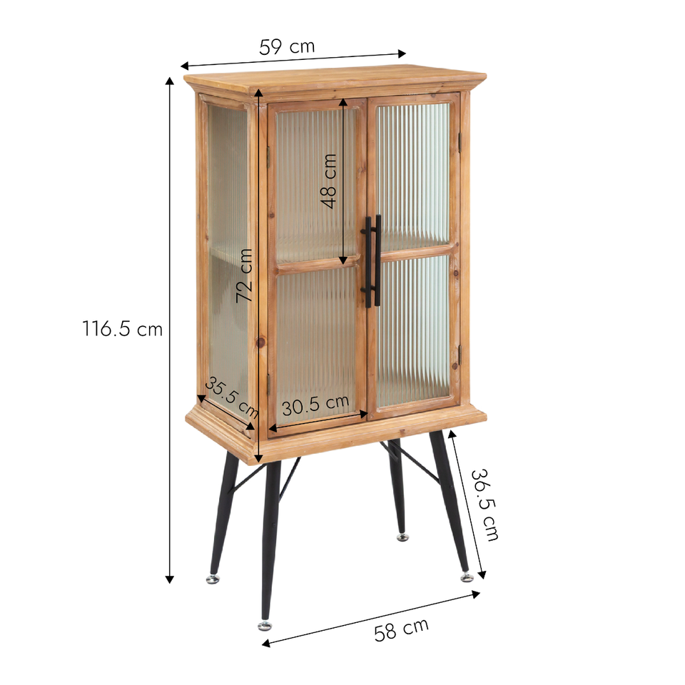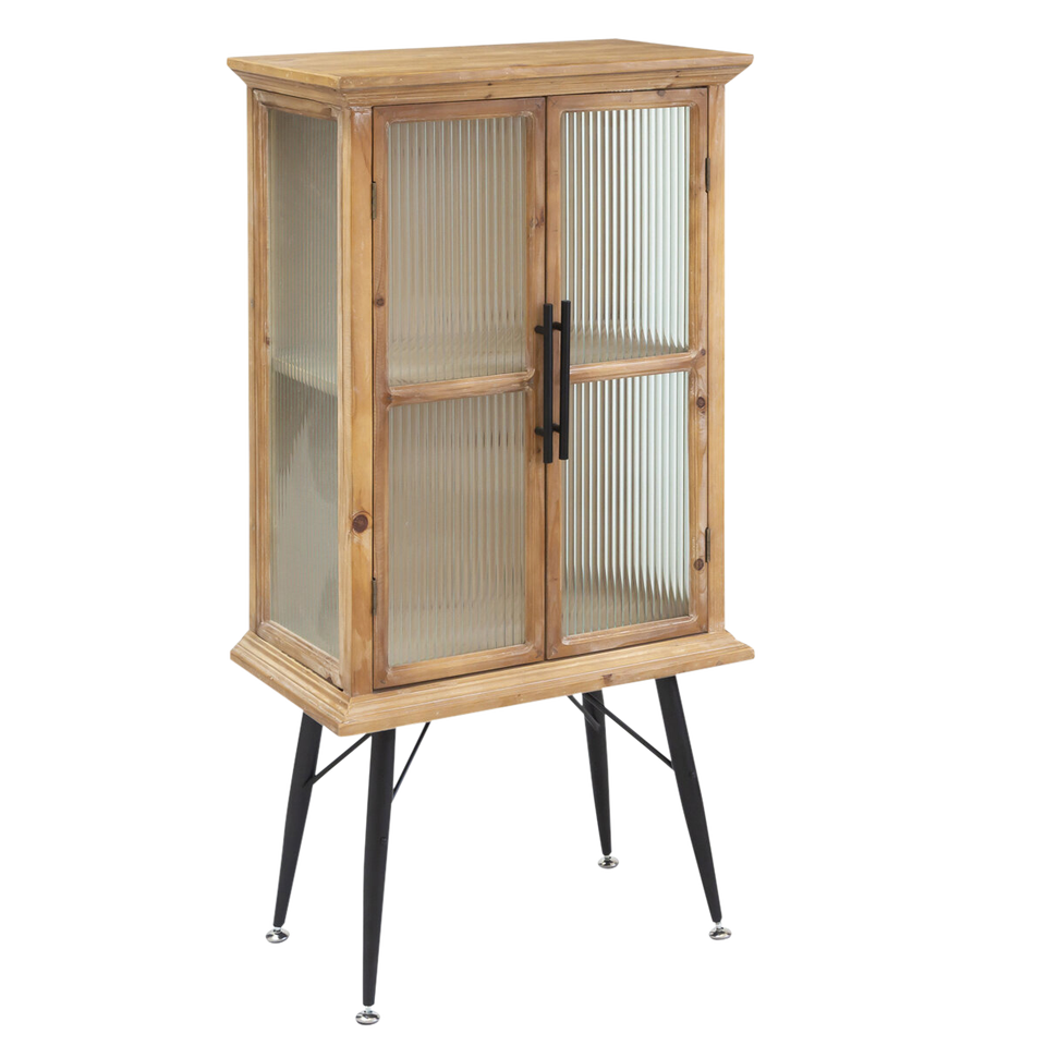 ตู้โชว์ไม้สน 2 ประตู รุ่นนิโคล โมเดิร์น พร้อมกระจกแบบร่อง สำหรับใช้ในโรงพยาบาลและโรงแรม