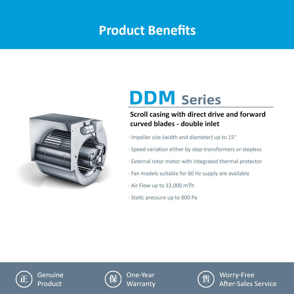 Nicotra DDM-9-7-E6G3603-3F-4P-1V-+ SCT 230/400V 50/60Hz 1355W 2.3A 1410RPM พัดลมระบายความร้อนแบบแรงเหวี่ยงช่องเข้าคู่มอเตอร์ AC