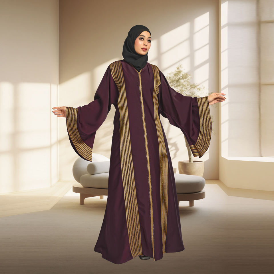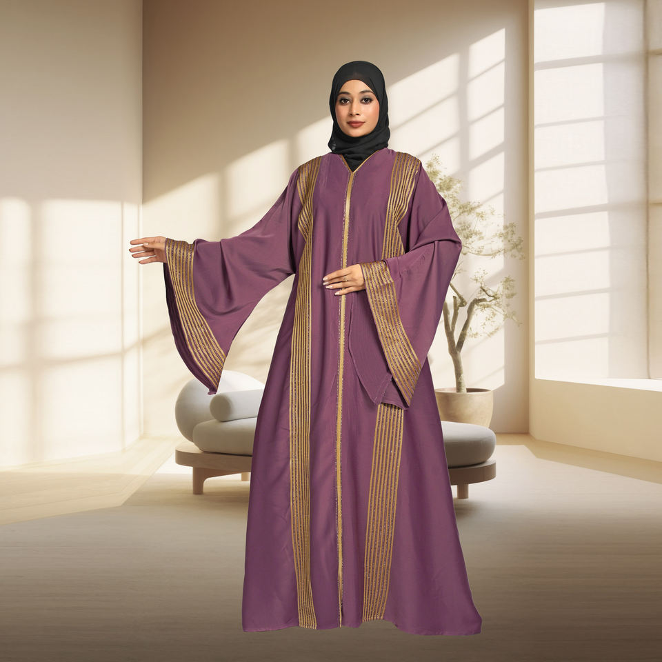 ชุดอาบายะห์อิสลามแบบเรียบง่ายสำหรับงานอีด ผ้าไนดา ระบายอากาศได้ดี น้ำหนักเบา ไม่ยับ คอวี ลายเส้นแนวตั้ง ไซส์พลัส