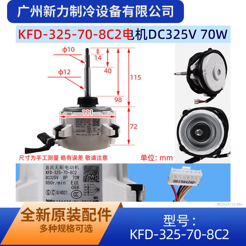 Nidec มอเตอร์ไร้แปรงถ่าน kfd 325 70 8c2 325V 70W 850rpm สำหรับเครื่องปรับอากาศกลางแจ้ง