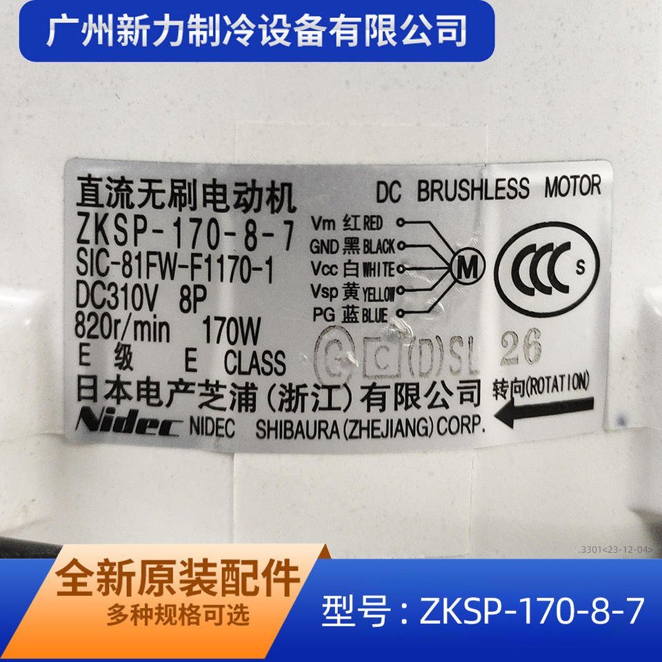 นิเด็ค ZKSP-170-8-7 มอเตอร์ไร้แปรงถ่าน DC 310V 170W 820 รอบต่อนาที สำหรับพัดลมเครื่องปรับอากาศ