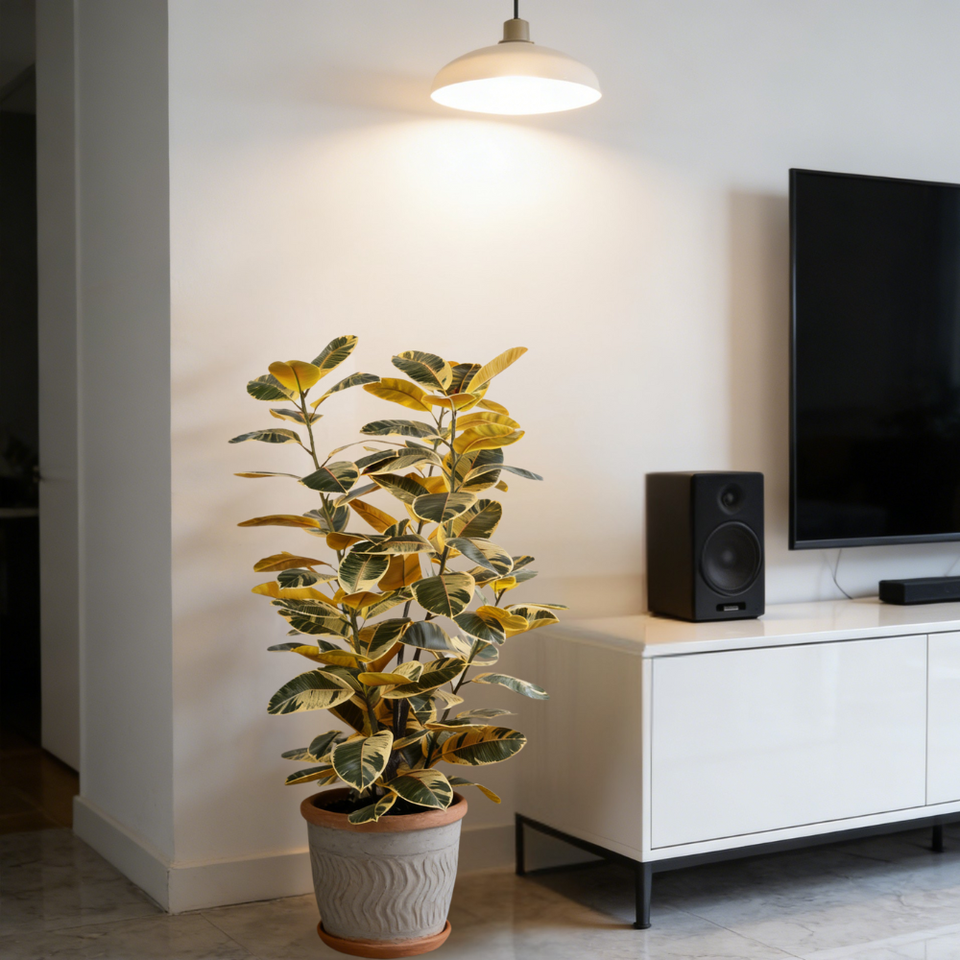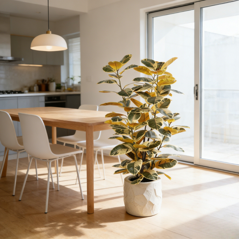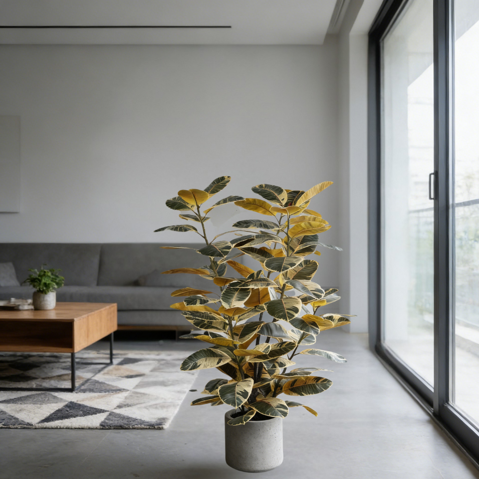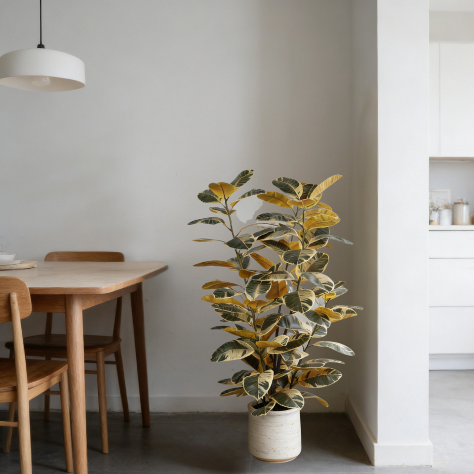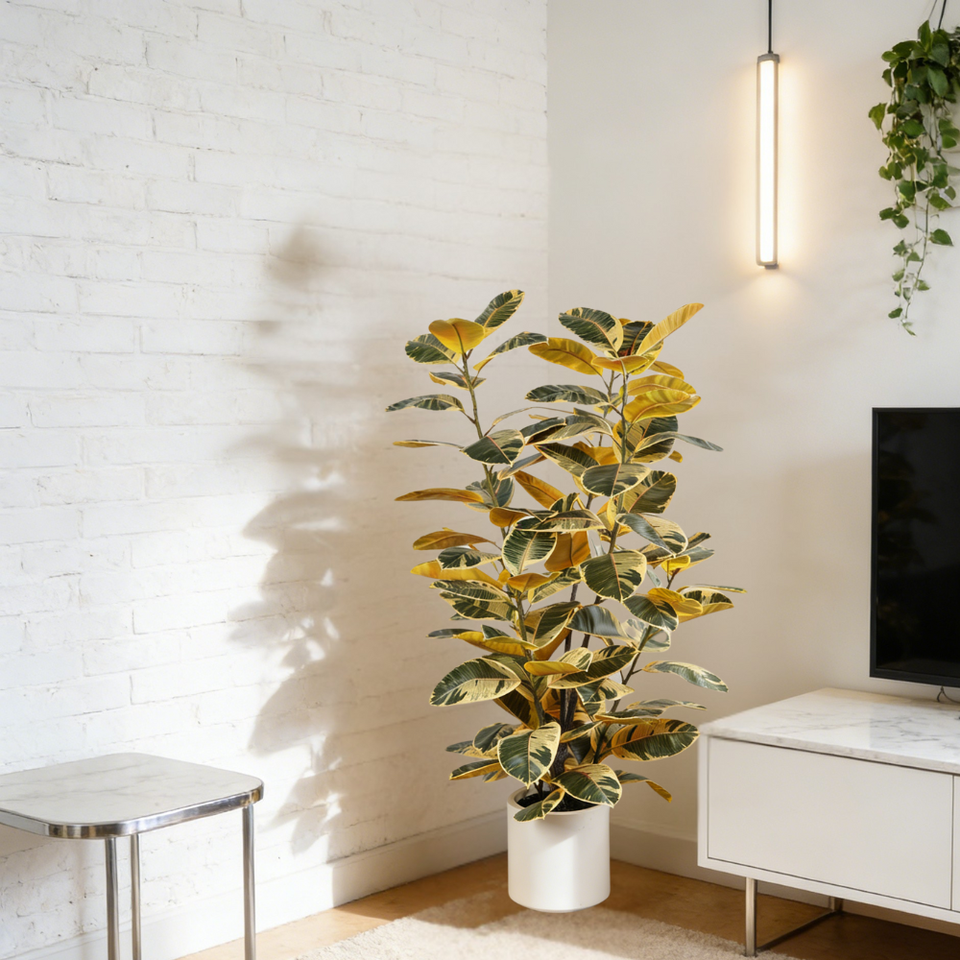 สไตล์:ต้นยางพาราเทียมสมจริงในกระถางพลาสติกสีขาว