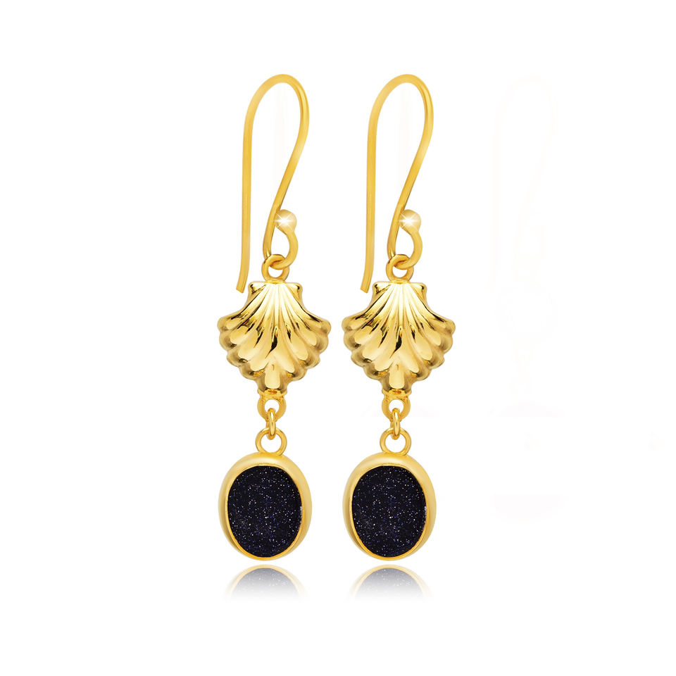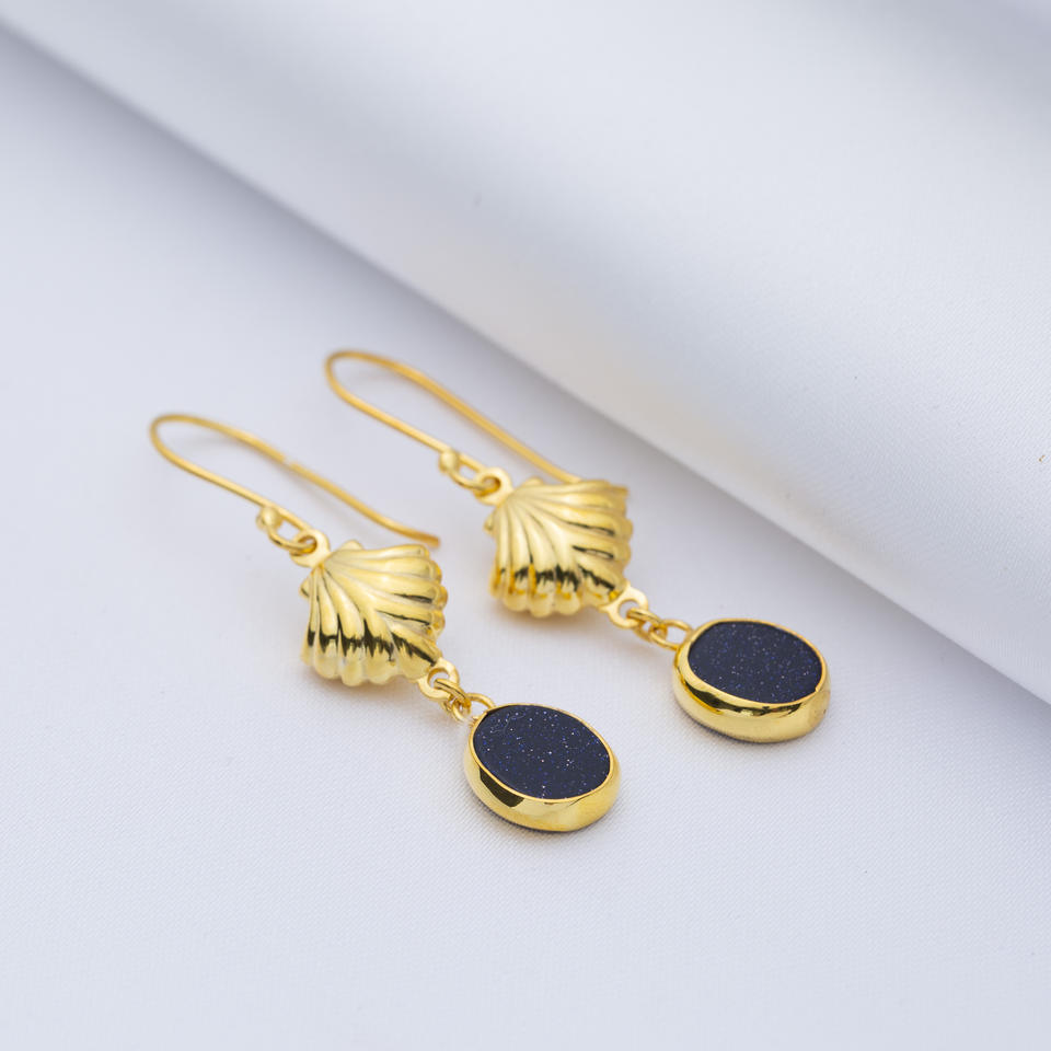 ต่างหูเงินแบบทำมือดีไซน์รูปเปลือกหอยสีดำเงางามดีไซน์สวยหรูต่างหูเงิน925
