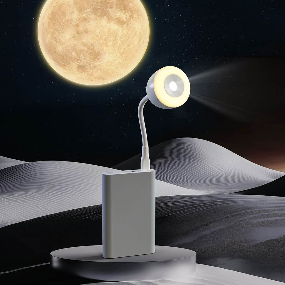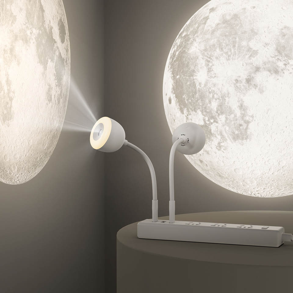 ไฟกลางคืนแบบชาร์จ USB พร้อมรีโมทคอนโทรล วัสดุ ABS - ฉายภาพดวงจันทร์สร้างบรรยากาศแสงจันทร์อันงดงามสำหรับห้องนอน