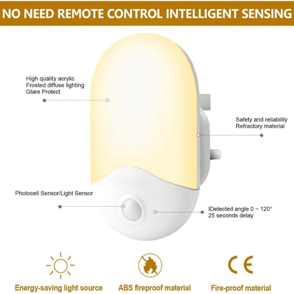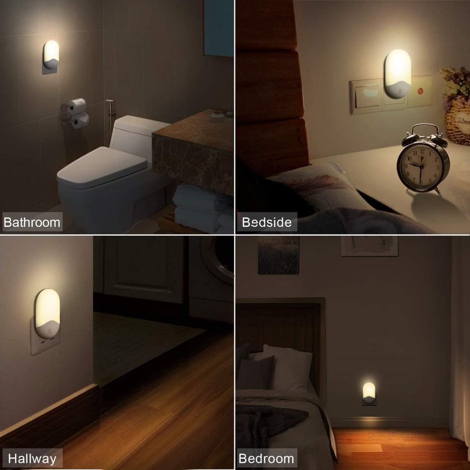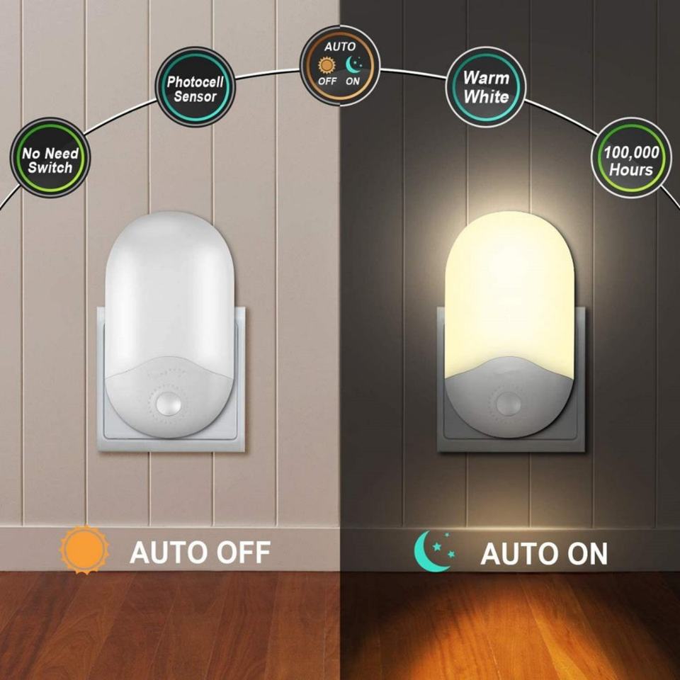 ไฟกลางคืนแบบเสียบปลั๊กติดผนังพร้อมเซ็นเซอร์ตรวจจับแสงตั้งแต่พลบค่ำถึงรุ่งเช้า