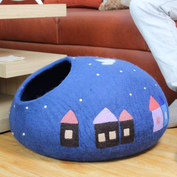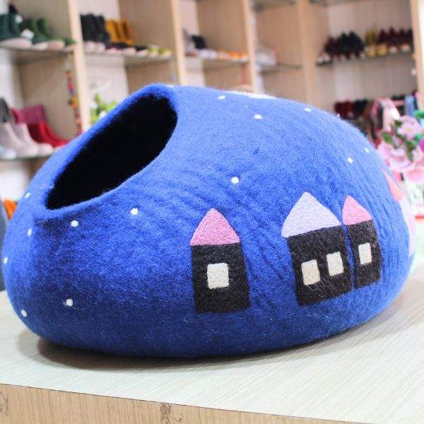 เตียงสัตว์เลี้ยงขนแกะธีมกลางคืนทำด้วยมือสไตล์คลาสสิกและทันสมัย
