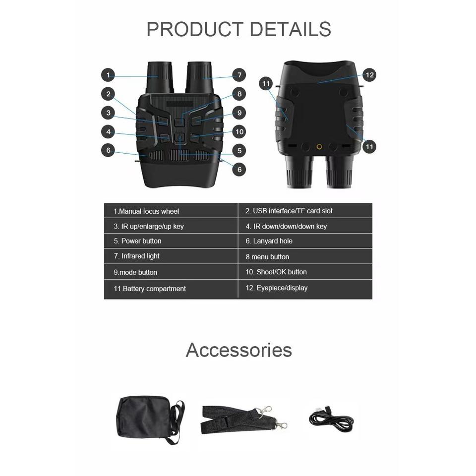 กล้องส่องทางไกลมองกลางคืน NV3180 อินฟราเรดดิจิตอลพร้อมช่องใส่การ์ด Tf สำหรับการล่าสัตว์และการใช้งานกลางแจ้ง