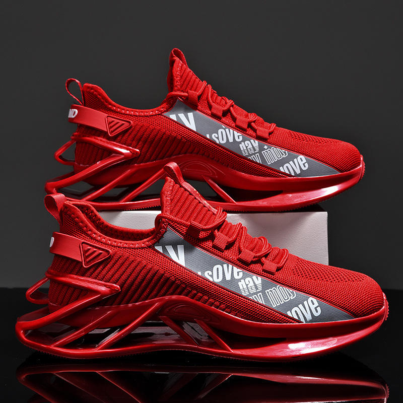 รองเท้ากีฬาแฟชั่นผู้ชาย ระบายอากาศได้ดี น้ำหนักเบา ทนทาน สีแดงสด ดีไซน์ใบมีด สำหรับกิจกรรมกลางคืน
