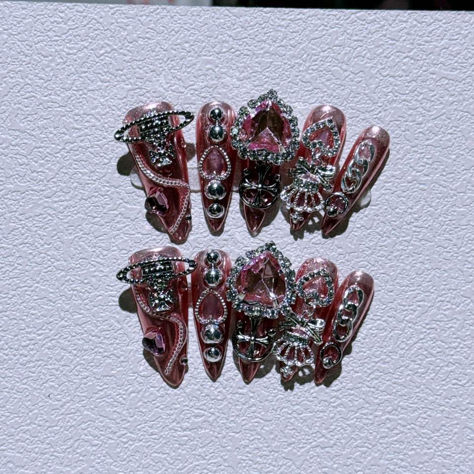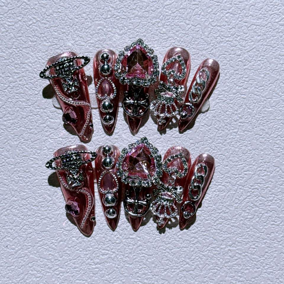 แผ่นติดเล็บเรซิ่นแบบถอดได้ ลายการ์ตูนท้องฟ้าเต็มดาว สไตล์ดาร์ก แรงบันดาลใจจากควีนส์สไปซ์เกิร์ล สำหรับนิ้วทรงอัลมอนด์