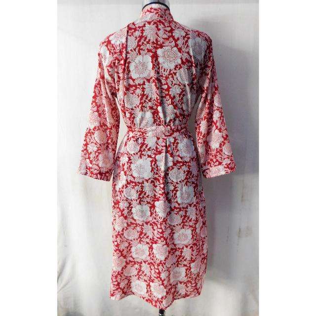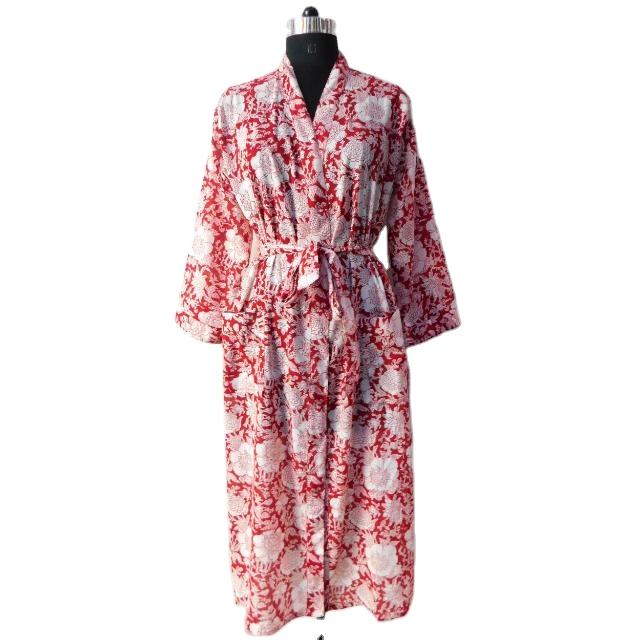 ชุดคลุมอาบน้ำผ้าฝ้ายเนื้อนุ่ม คอวี ลายพิมพ์บล็อก พร้อมเข็มขัด สไตล์กิโมโน สำหรับใส่นอน ใส่ไปทะเล ลดราคาพิเศษจากโรงงาน