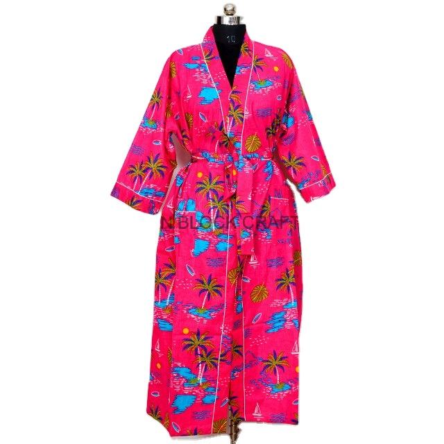 Nights & Parties Free Size & Plus Sizes Bikinis Beachwear Stylish Women's Cotton Kimono Dress Bird Printed Maxi Gown for Summer