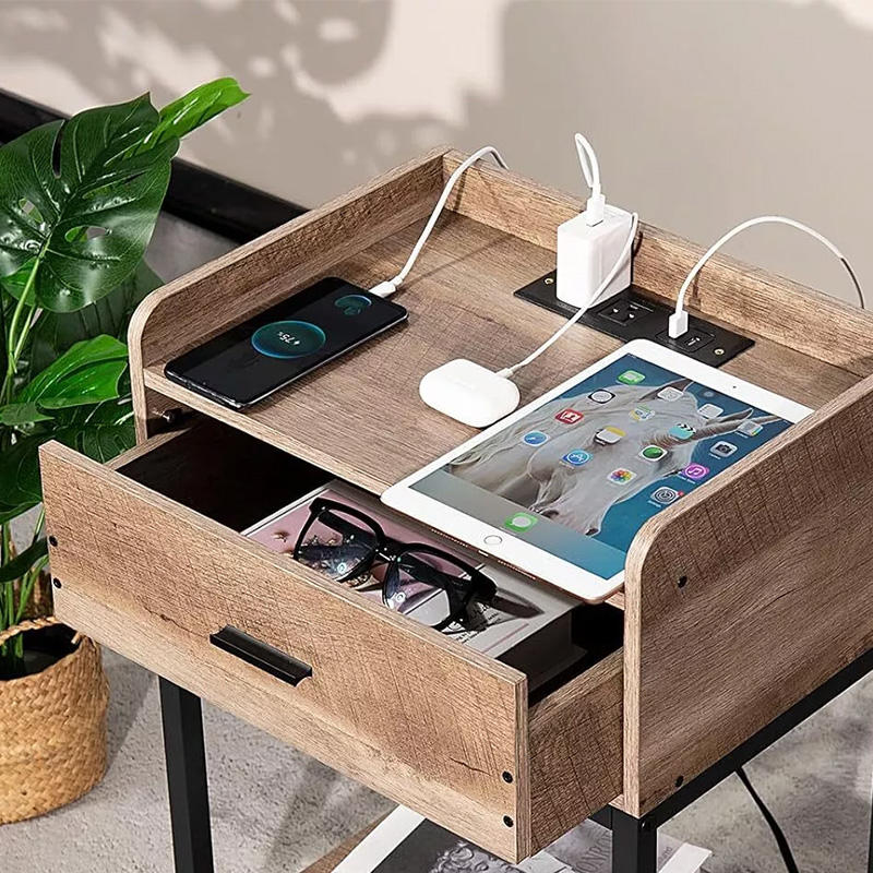 Dual Charging Ports + 3-Tier Storage
