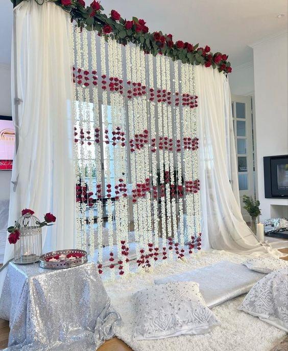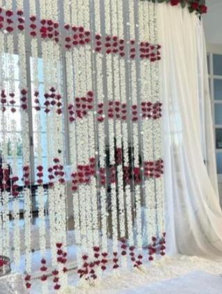 NIKAH สตริงมอกร้าเทียมกั้นส่วน NIKAH พร้อมกุหลาบตกแต่งธีมงานแต่งงานงานปาร์ตี้ฉากหลังเวทีงานเทศกาล