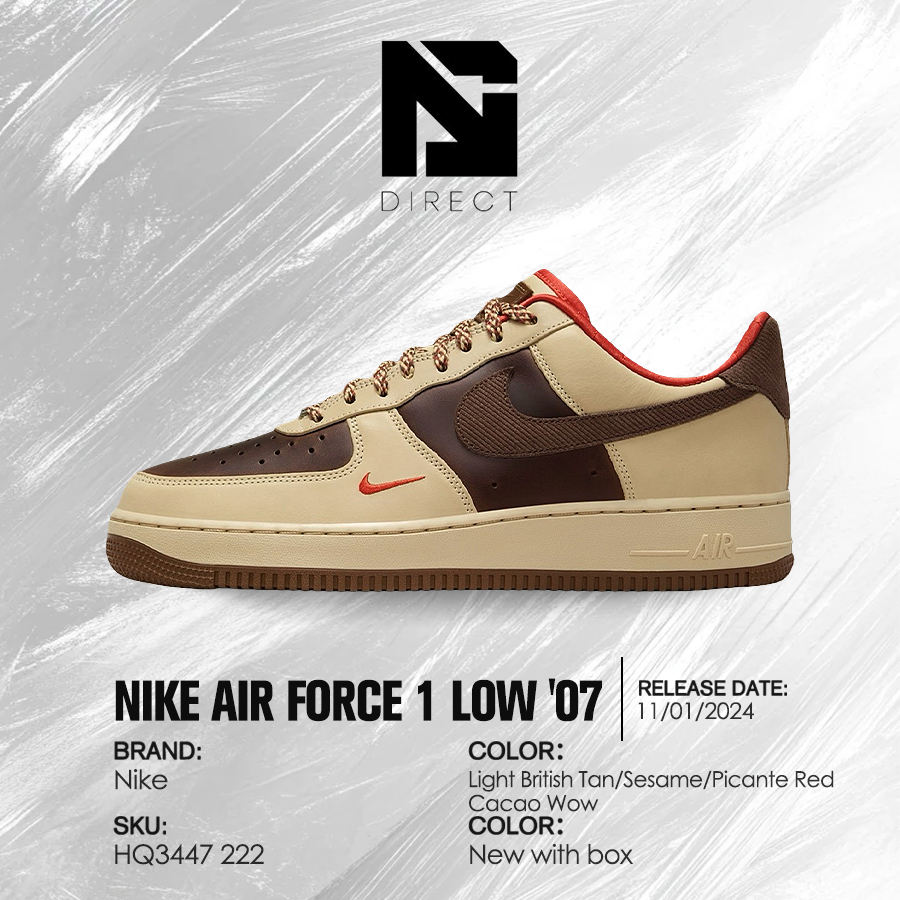 ไนกี้แอร์ฟอร์ซ 1'07'ไลท์ บริติช แทน คาคาโอ ว้าว'รองเท้าผ้าใบแฟชั่นน้ำหนักเบา รองเท้าลำลองผู้ชายมีสไตล์