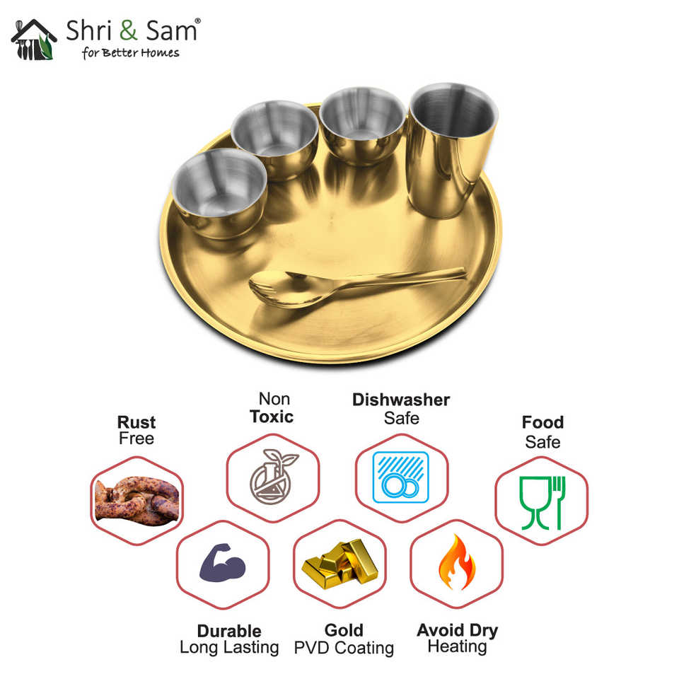 Elegant Nikki Stainless Steel Double Wall Thali Set Luxury Dinnerware Collection Gold PVD Premium Quality for Your Dining