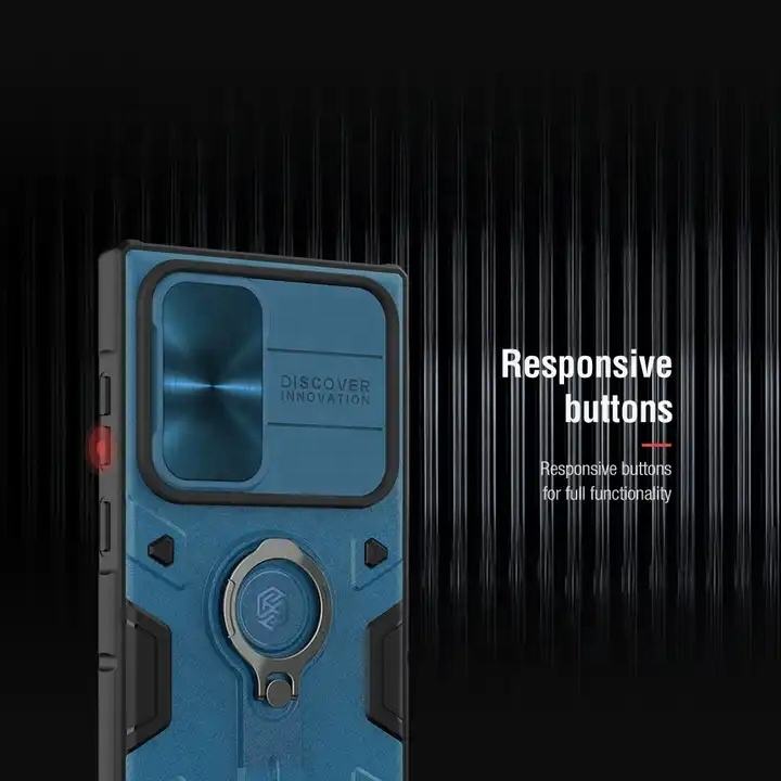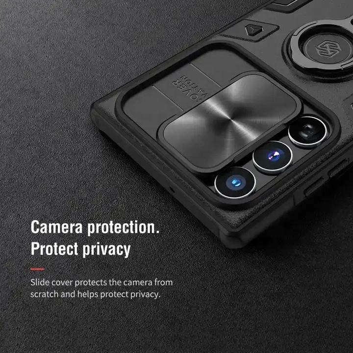 เคส NILLKIN สำหรับ Samsung S23เคสกันกระแทกพิเศษพร้อมฝาครอบกล้องสไลด์และขาตั้งห่วงที่ปรับได้ S23เคสยอดนิยม S24