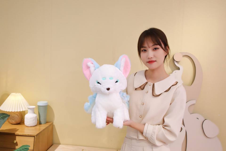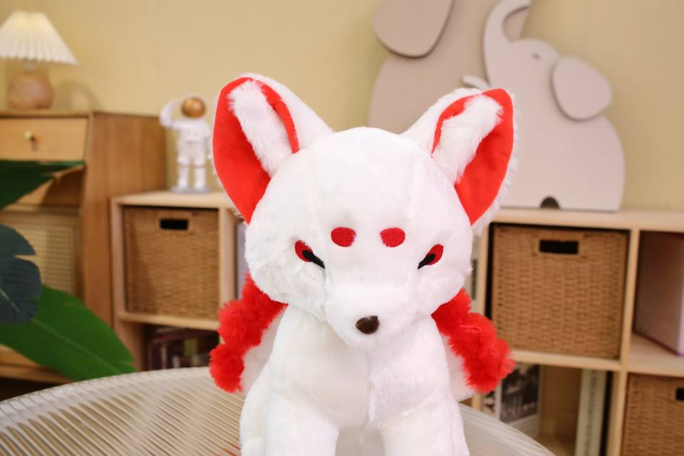 ตุ๊กตาหมาจิ้งจอกเก้าหางของเล่นสำหรับเด็กการ์ตูนยัดไส้หมอนนุ่มเบาะรองนอนสำหรับวันเกิดปัจจุบันโพลีเอสเตอร์เต็ม